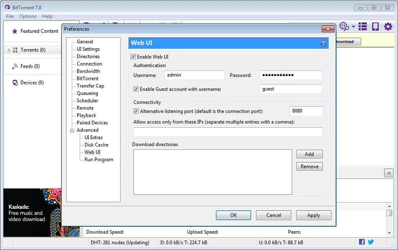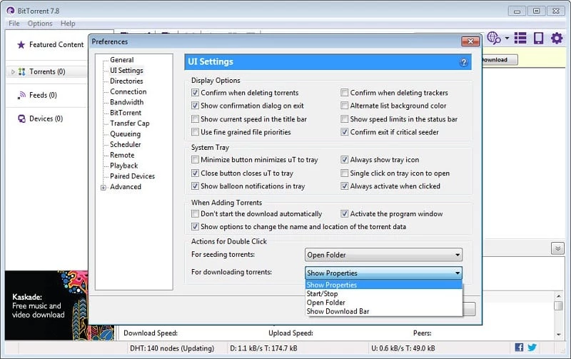 È l'opzione migliore per gli utenti che desiderano ottenere il massimo pur utilizzando una connessione Internet limitata. È possibile accedere alle impostazioni di larghezza di banda e impostare il client in modo che utilizzi una connessione Internet limitata. Inoltre, il supporto dei link magnet per entrambi i client per la localizzazione dei peer tramite DHT semplifica il processo di condivisione e consente a entrambi i client di avviare i download direttamente senza separare i file .torrent.